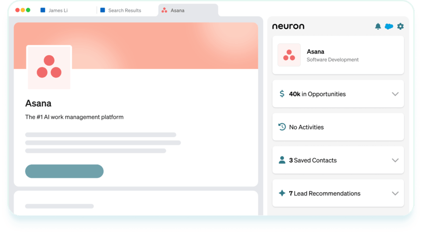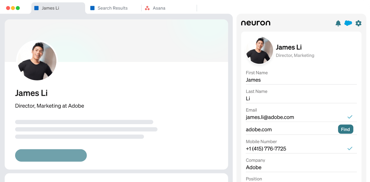 Neuron gives you the right contact data, fully integrates with your CRM, and connects with your existing outbound sales stack